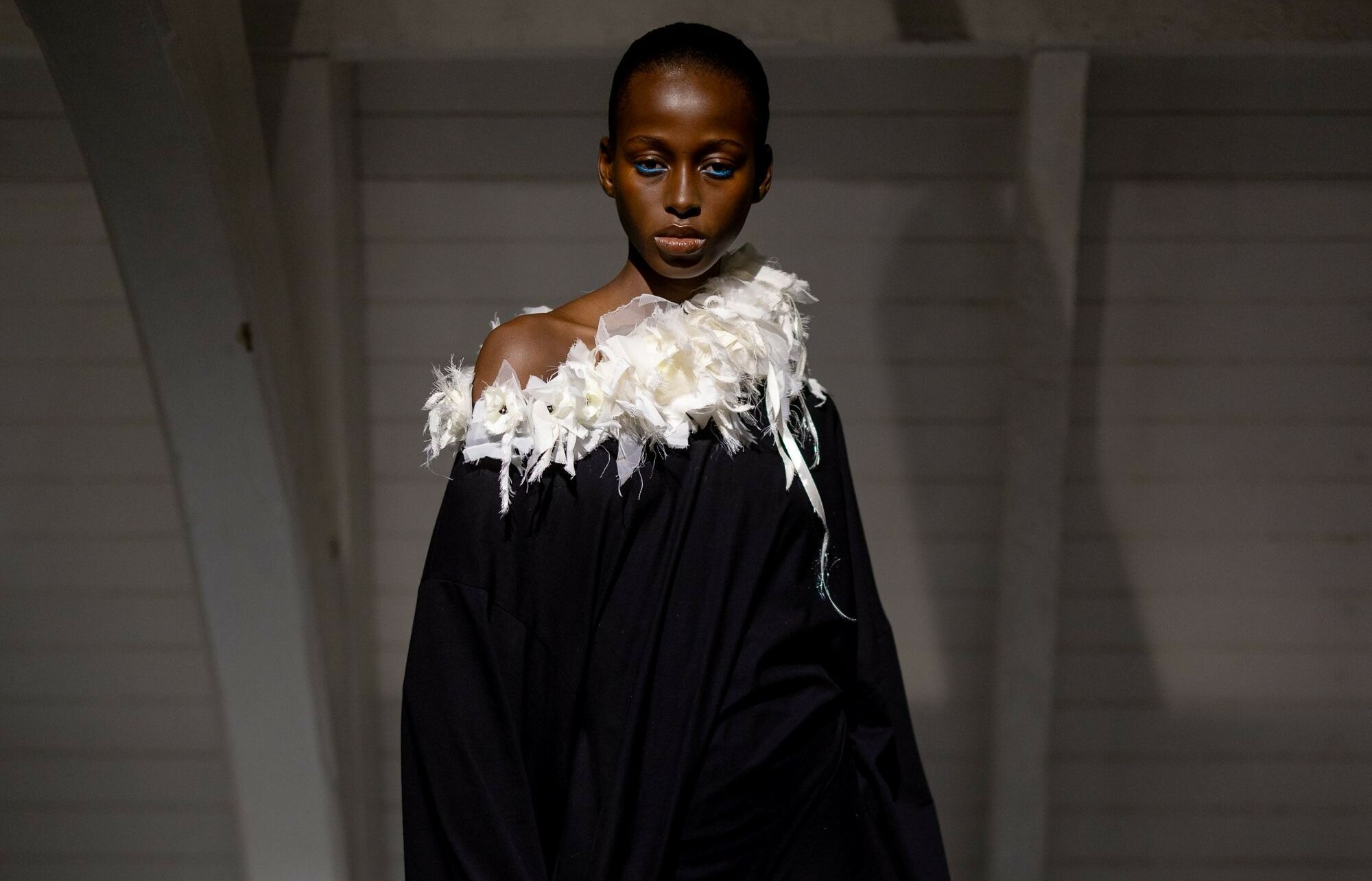 In the mineral silence of a forgotten fountain, a pale figure rises like a vision, mistaking stone for sky. Feathers, tulle, and marble dissolve into one another, erasing the boundary between flesh and monument, reflection and reality. The body becomes relic, angel, or wandering spirit, suspended in a sacred architecture of water and shadow. A monochrome reverie where fragility confronts permanence, and beauty hovers between earth and heaven.