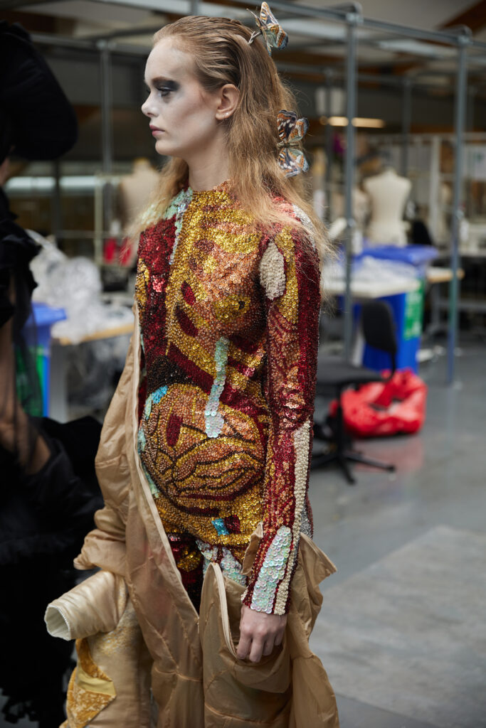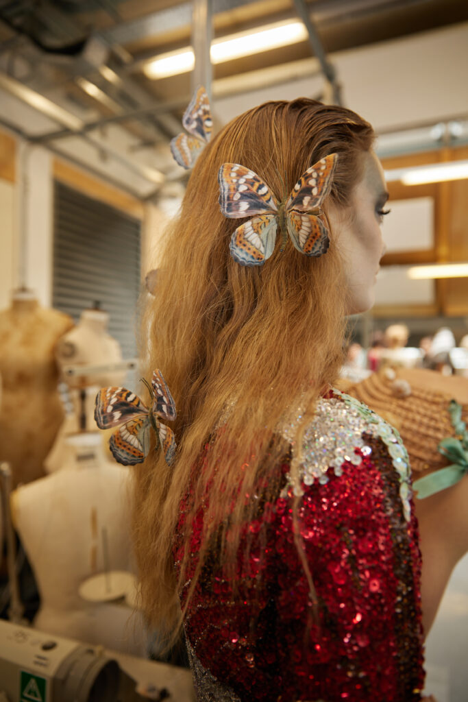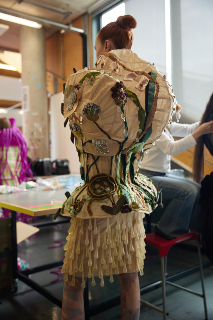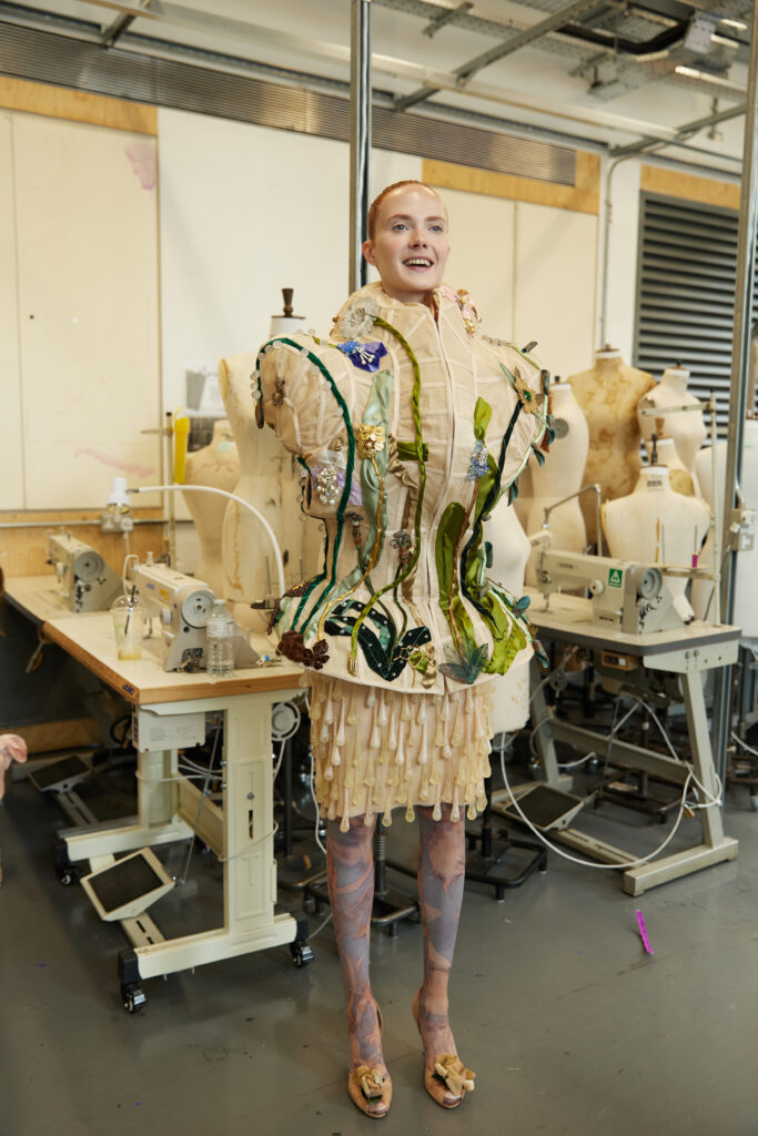 As our conversation, aptly taking place on the iconic CSM roof garden, draws to a close, I ask Antonio where he sees his garments in the future. For his more sculptural insect pieces, he says the dream would be to have them displayed in a large, butterfly-cage-like glass dome in the Stedelijk Museum in Amsterdam. “I definitely want one of the designs to become a lamp in my apartment, maybe the secret garden one, other than that I haven’t really thought about it.”