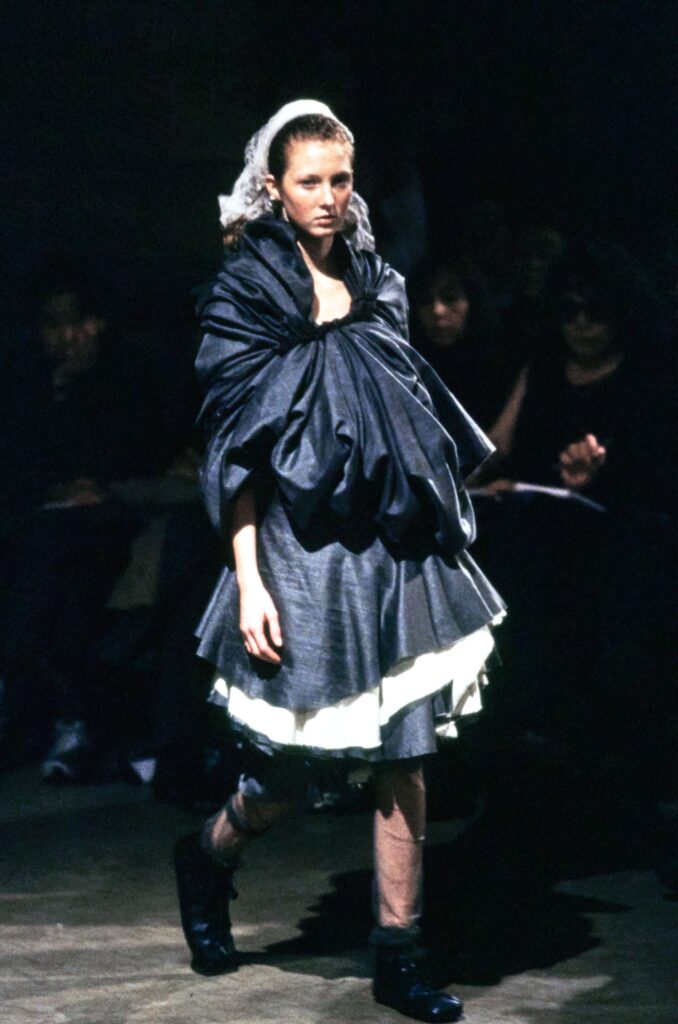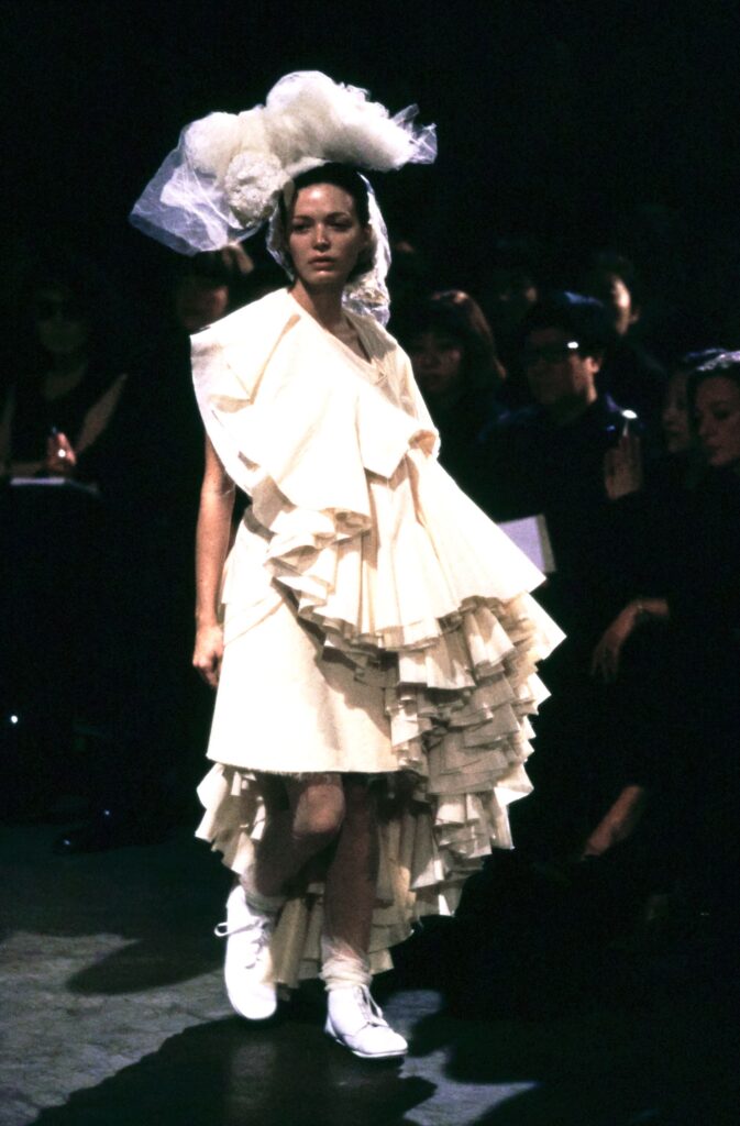 In the 1970s, the second-wave feminist movement brought a shift in dressing, as women moved away from restrictive silhouettes and the fantasy of primness toward looser, more liberated forms. In the 1980s, Kawakubo and Yohji took to Paris after years of showing in Tokyo, presenting designs that were raw, deconstructed, and rendered in muted colour palettes—an antithesis to the decade’s excess.