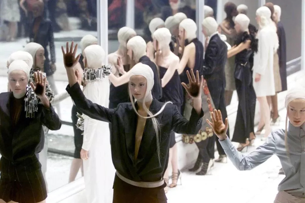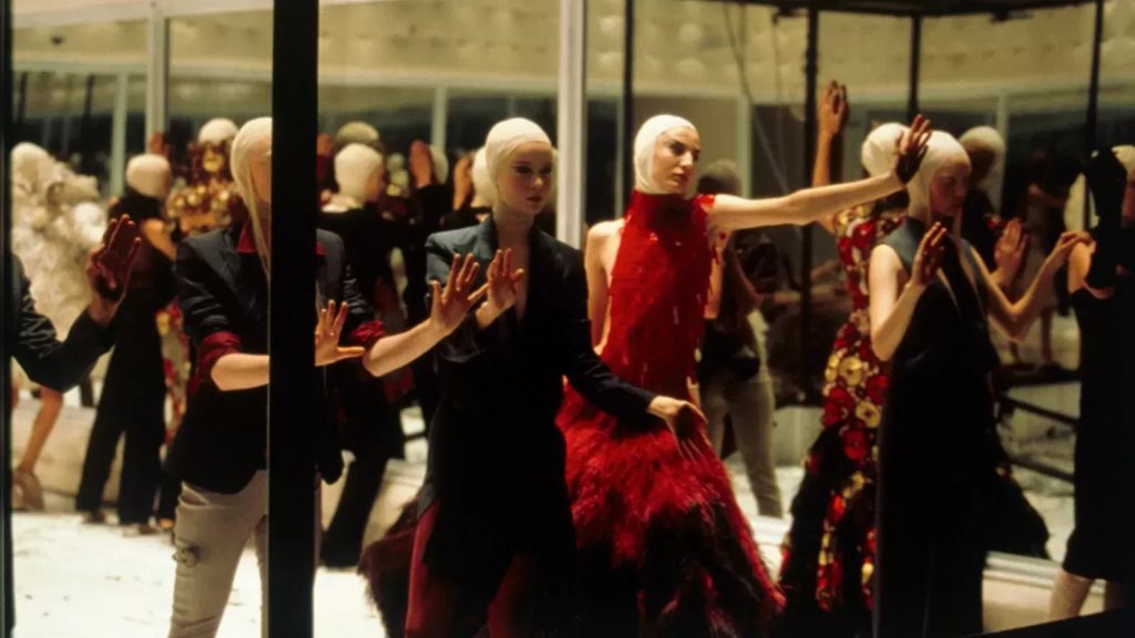 On 26 September 2000, some of the biggest names in fashion, including Anna Wintour and Gwyneth Paltrow, entered Alexander McQueen’s stylised sanatorium at the Gatliff Road Warehouse in London. The audience was immediately enveloped in an eerie atmosphere as they were forced to wait over an hour for the show to begin, sitting opposite a mirrored glass cube with nothing but their reflection and the sound of a slow, continuous heartbeat to keep them occupied. This was a purposeful move by McQueen, pushing his audience into a state of anxiety and stress to make them feel the mental anguish that the models and garments would go on to display during the show.