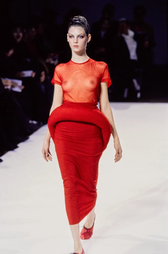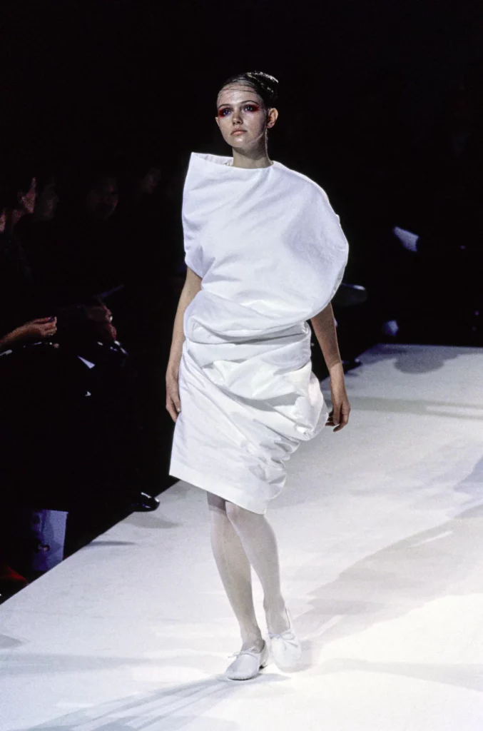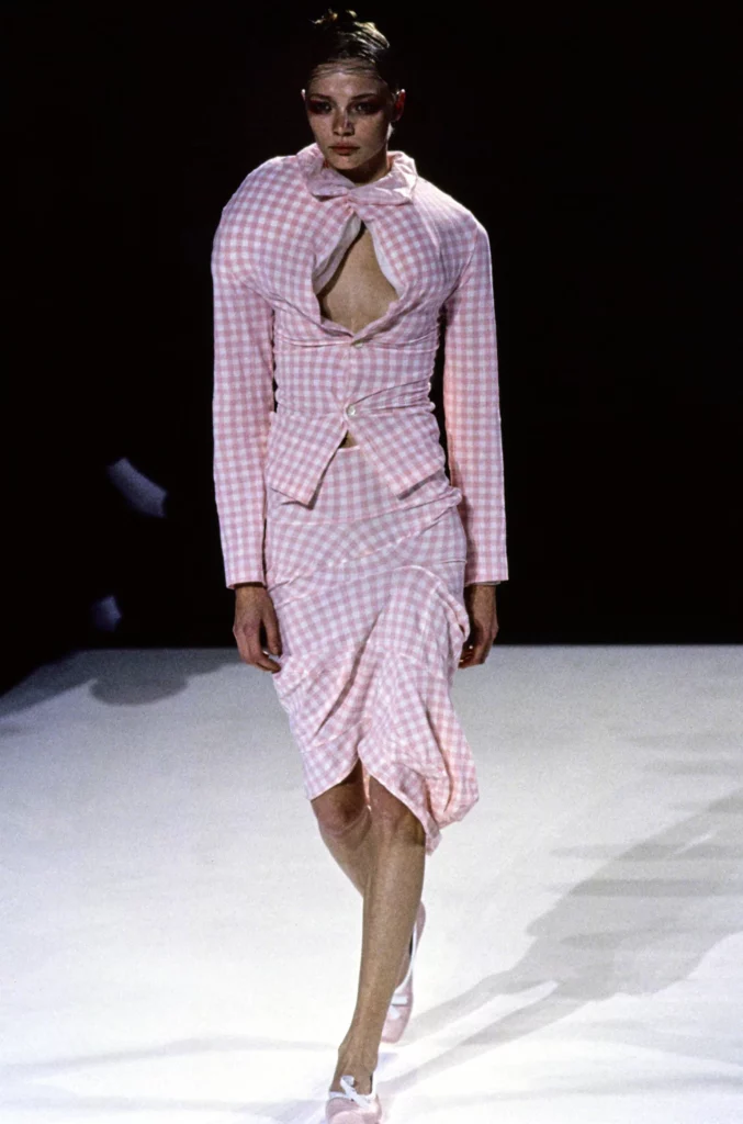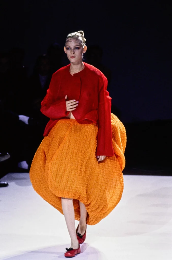 Rei Kawakubo’s SS97 collection, often referred to as the “lumps and bumps” show, culminated in a collaboration with legendary choreographer Merce Cunningham. “I realised that the clothes could be the body and the body could be the clothes,” Kawakubo later explained. “This was an idea for possible new clothes. I then started to design the body.”