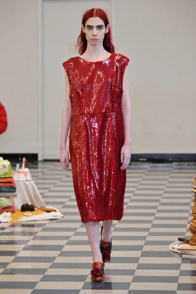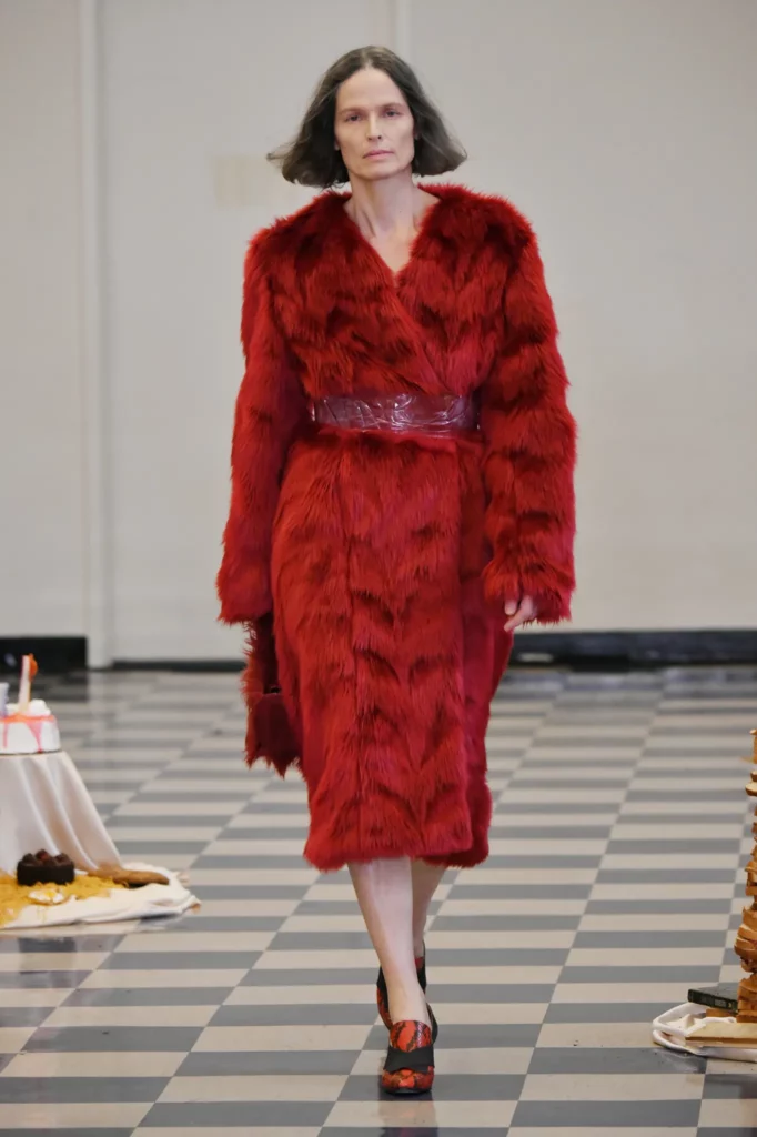 For her sculptural project turned fashion line, Puppets and Puppets, creative director Carly Mark drew direct inspiration from Cronenberg’s Dead Ringers (1988). Tailored wool suits, sequined dresses, snakeskin, and faux fur were modeled among food sculptures by artist Quori Theodor. The blood red garments echoed the surgical robes worn by the film’s identical twin gynecologists, both played by Jeremy Irons, whose mirrored identities spiral into psychosexual breakdown.