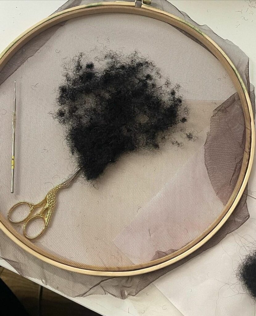 Fast forward to the 21st century. Modern medicine has made the merkin medically redundant, but that has not stopped fashion from revisiting one of history’s most taboo accessories. Hair has reappeared as a material beyond the head in recent years. D’heygere introduced hoop earrings made from synthetic extensions, while Charlie Le Mindu created head-to-toe hair looks for Doja Cat’s 2024 Coachella set and Scarlet tour, complete with Victoria’s Secret–style wings crafted from blonde tresses.