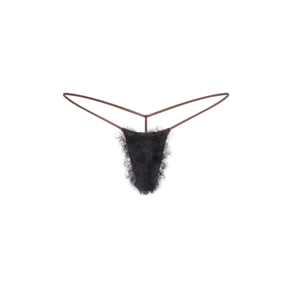 This resurgence aligns with fashion’s fascination for lingerie-as-outerwear, led by Miu Miu’s sequined briefs and bras. Could the next layer to peel back be pubic wigs themselves? The idea is not unprecedented. In 1994, Vivienne Westwood sent Carla Bruni down the runway in a fur coat opened to reveal merkin-style matching pants. Westwood’s boldness, often ahead of her time, makes her a lodestar for today’s avant-garde designers.